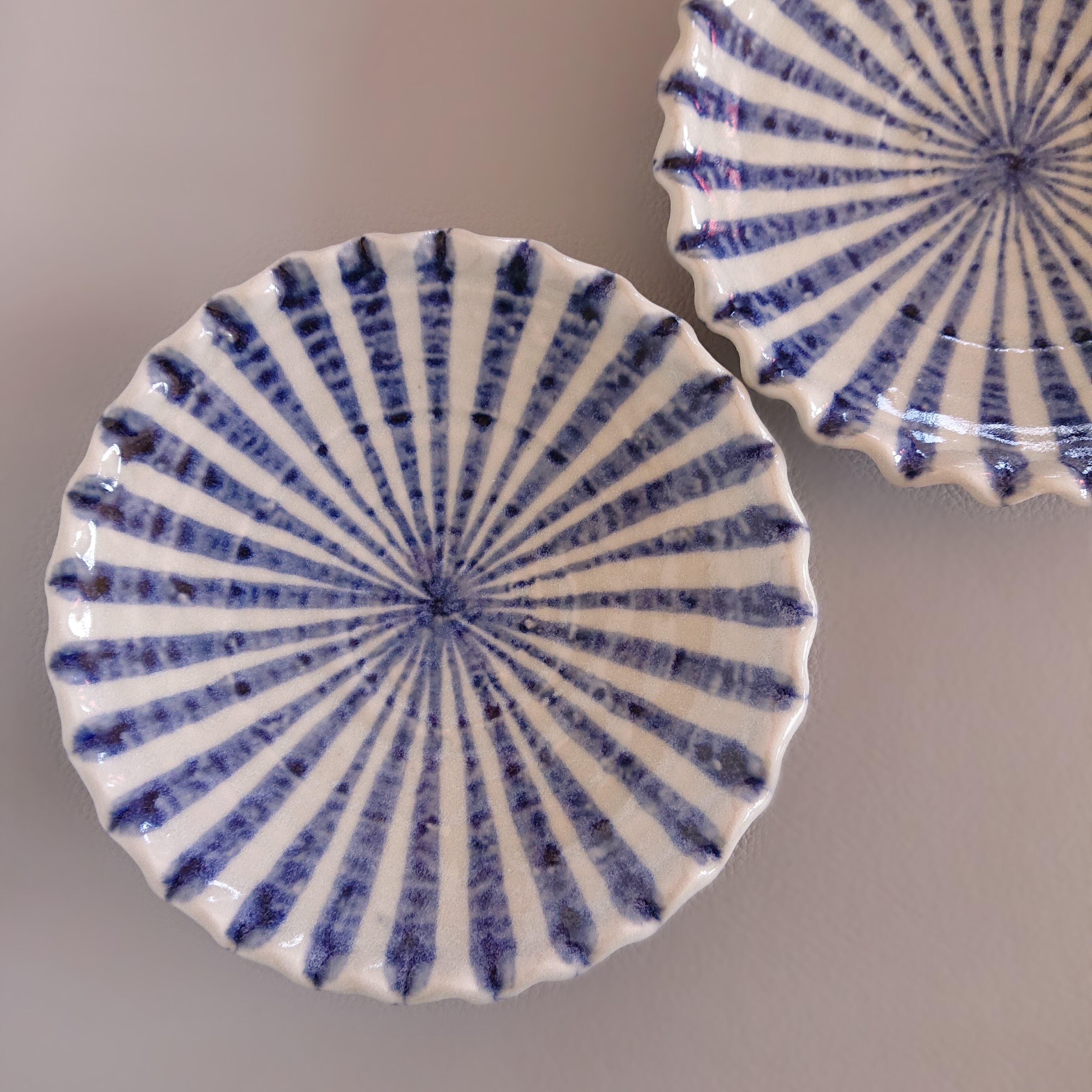 平皿 中 取り分け皿サイズ 澄んだ紺色ストライプ 十草柄